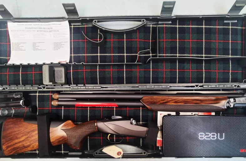 As new, never fired Benelli 828U Beccaccia in 12ga — a premium Italian over-under featuring 24″ satin black cryo-treated Power Bore barrels, carbon-fibre rib, grade II WoodFX walnut stock and Benelli’s Progressive Comfort recoil system. This model was never offered for sale in North America.