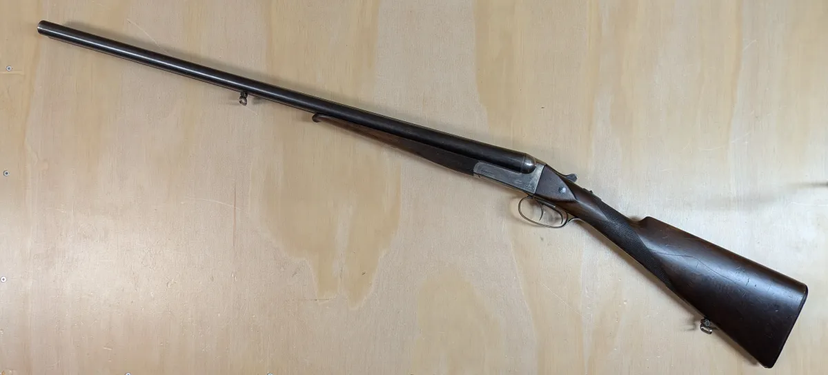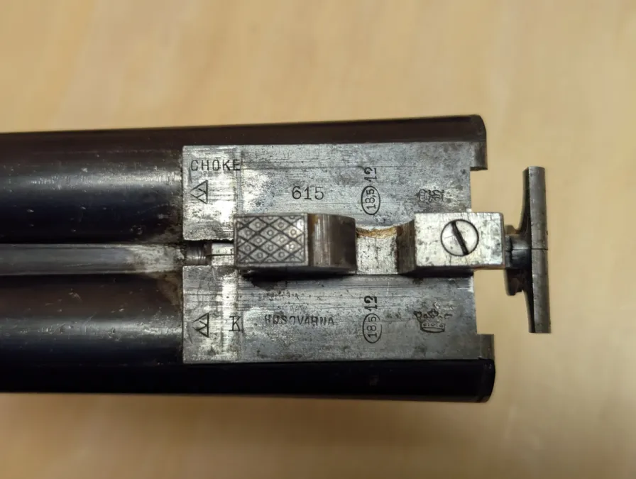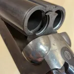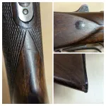 Small dent in the left barrel (see pictures). Very thin crack behind the tang which I believe was professionally repaired at some point (see pictures). Toe and buttplate have a small chip (see pictures). I will include replacement buttplate for free for the right buyer.