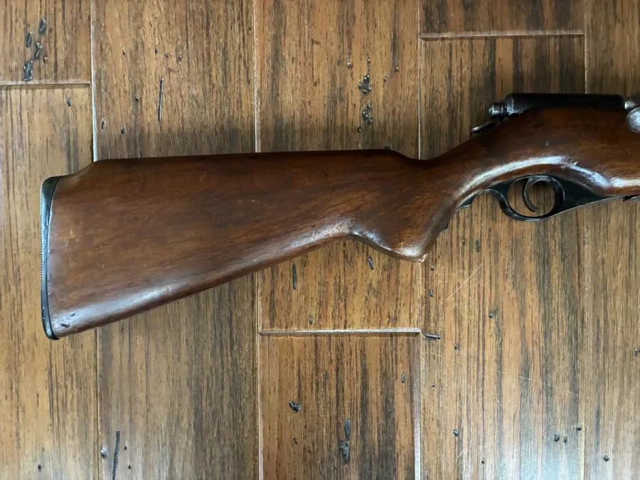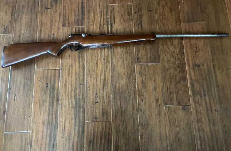 A Mossberg 183 d-c 410 bolt action which chambers 3” with a 24” barrel with a modified screw on choke ( original ) Wood stock is in nice condition no cracks, the blueing is gone but no rust, bore is nice and shiny. Gun has an internal mag (2 plus 1 ) Gun is in good condition and works great ( bolt action is very smooth, loads and ejects smooth) Gun was made between 1953-1956. PAL will be validated, will ship on buyers dime ( send postal code for quote)