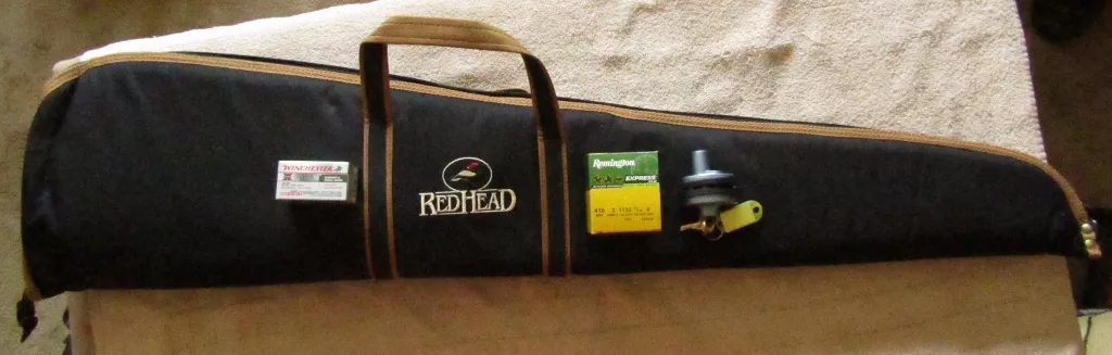 As per photos. Non- restricted. Savage Model 42 bought from the dealer in "new, never fired" condition and not fired by me. Chambered in .22MAGNUM over .410 x 2.5 and 3 inch, cylinder bore. Factory rubber recoil pad and synthetic stock. This is the solid-frame model, not takedown. Weight about 6 pounds, 20 inch barrels. Comes with a NEW sling, NEW soft case, trigger lock, 25 rds .410 #6 shot and 50 rds .22mag.