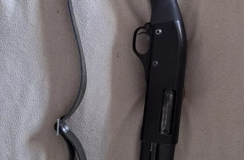 12ga 12" barrel shotgun with 4 shell holder and leather sling. Works perfectly. Willing to ship if buyer cover the shipping.