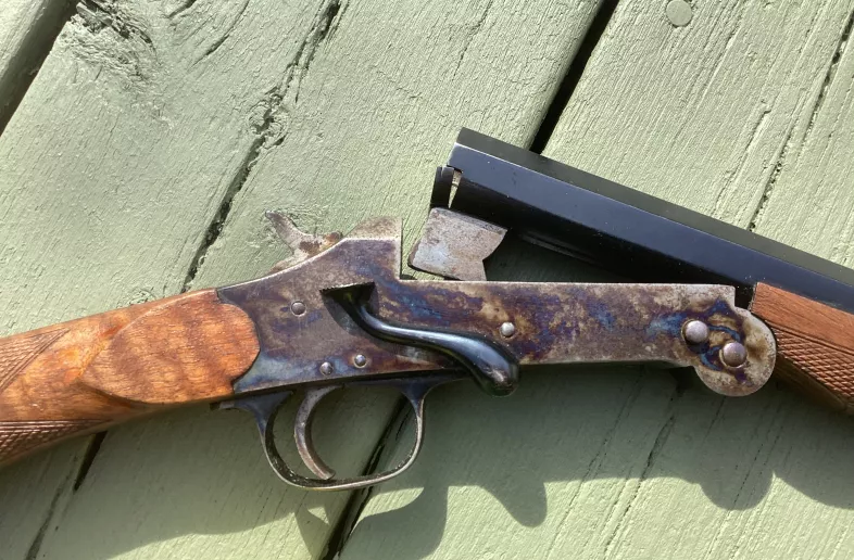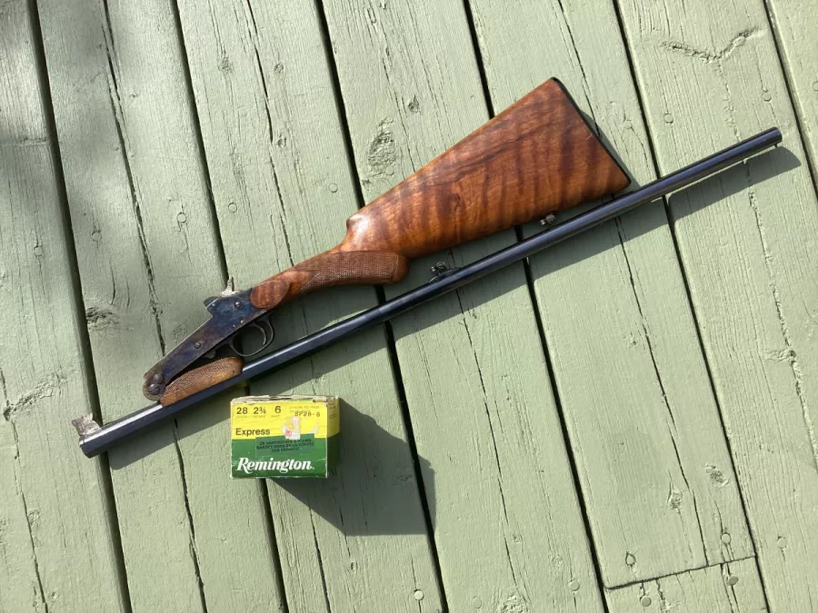 Very convenient 28 ga. ,single shot shotgun…hide in bag fold out.