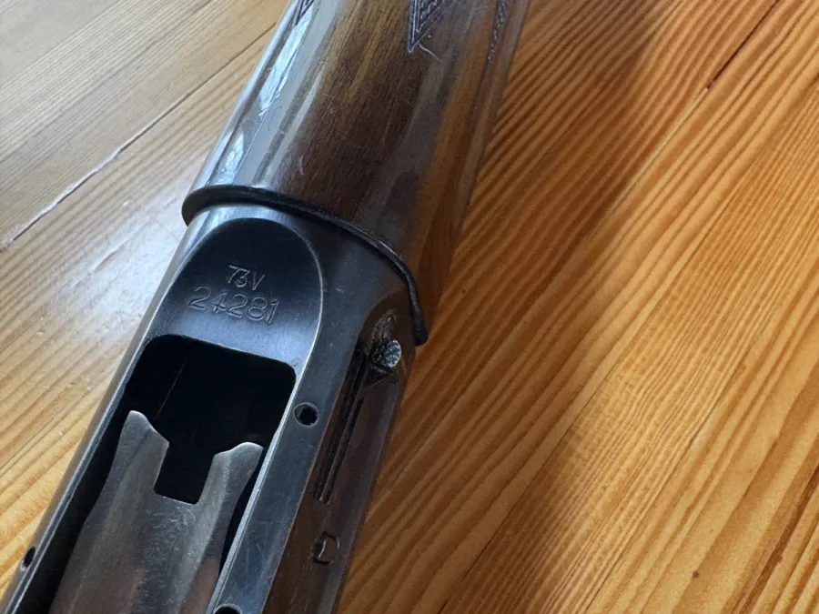 In great condition for is age, no cracks in wood stock or forearm, bore are excellent made in 1973 in Belgium.