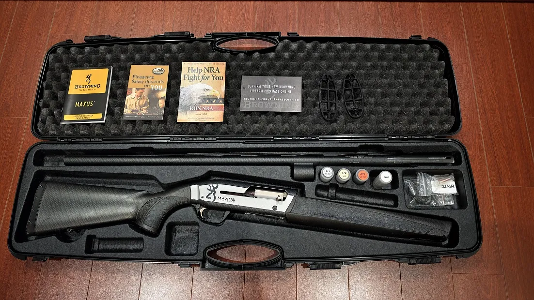 Used but in good condition Browning Maxus Sporting semi auto shotgun. 12ga x 3", 30 inch barrel. Comes with hard case, F/IM/M/IC/SK chokes, shims, spacers and a few extra front sights.