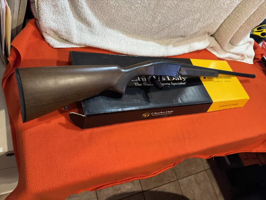 CHARLES DALY MODEL 101 - 20 GAUGE 3" SINGLE SHOT SHOTGUN. 26" BARREL. WALNUT STOCK. MOD CHOKE (REMOVABLE). SLING MOUNTS. BACK PACK SPECIAL - FOLDS OVER. NEW IN BOX. NO TRADES. $240 PLUS SHIPPING. CHECK OUT MY OTHER ADS.