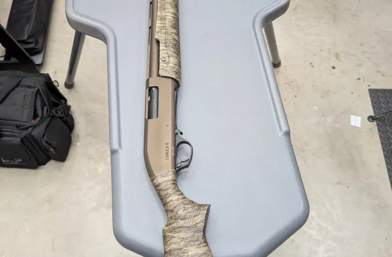 Canuck Hunter 12 gauge pump , bottom lands camo and cerekote finish.