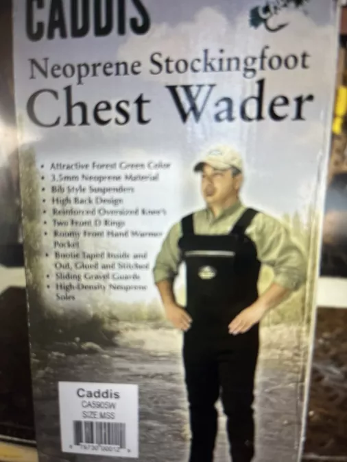Selling a set of Caddis Neoprene chest waders stocking foot never worn, will fit a person 5ft 6 in. to 5ft 11 in.male or female they are 3.5 mm thick so they are warm,foot size is 7/10 have hand warmer, gravel guards,great for fishing the river or flats or hunting the swamps for duck and geese smoke and pet free home asking $100 Located in PEI will ship on your dime