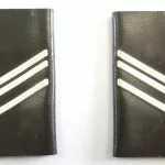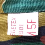The smock is in excellent condition with all buttons present and a functional zipper. There is a small white manufacturer's tag to the inside of the back of the collar which indicates the smock is in size N5F (shoulder width is approximately 20.5 inches) and was manufactured in 1981 by Begetex. Each cuff is adjustable via a small tab and 2 buttons. It also has a half-length zippered fly, 2 waist adjustment tabs each with a single female & 2 male snap fasteners, 2 large slanted chest pockets with flaps (each flap has a single snap fastener), 2 large front hip cargo pockets with flaps (each flap has a single snap fastener), a crotch jump flap that attaches to the inside bottom via snap fasteners (6 in the front and 2 in the back), and 2 buttoned shoulder straps. 2 black rubberized slip-on shoulder strap rank tabs for the rank of Sergeant are included.