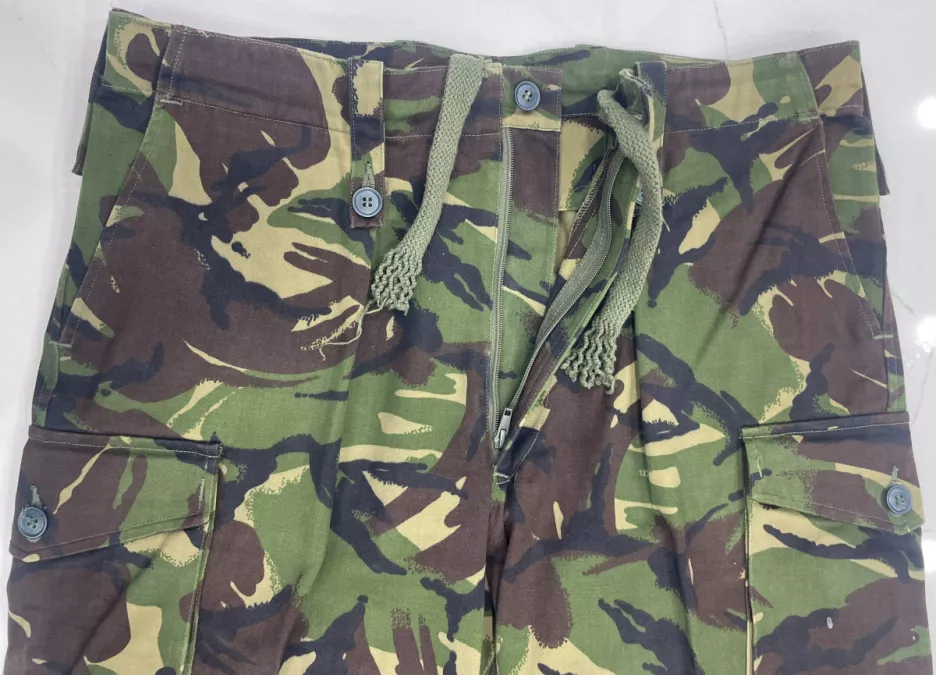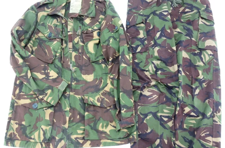 This combat smock and combat trouser are in the Temperate Disruptive Pattern Material camouflage pattern used by the British Armed Forces from 1966 to circa 2013.