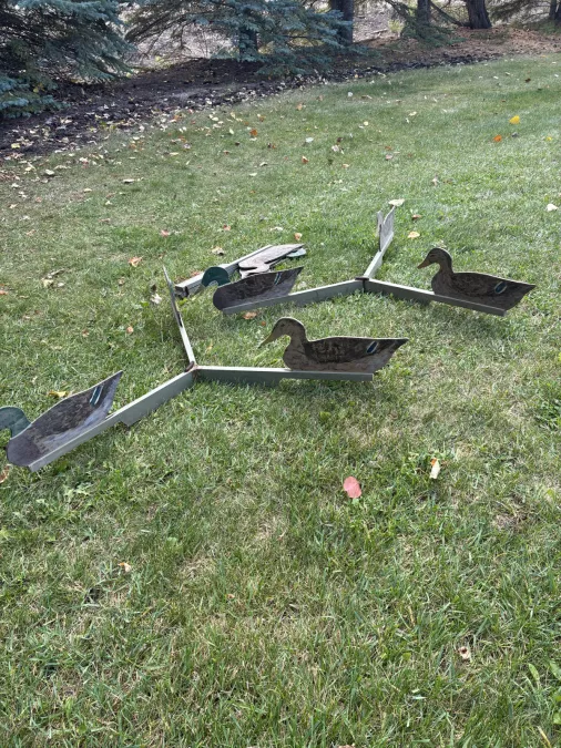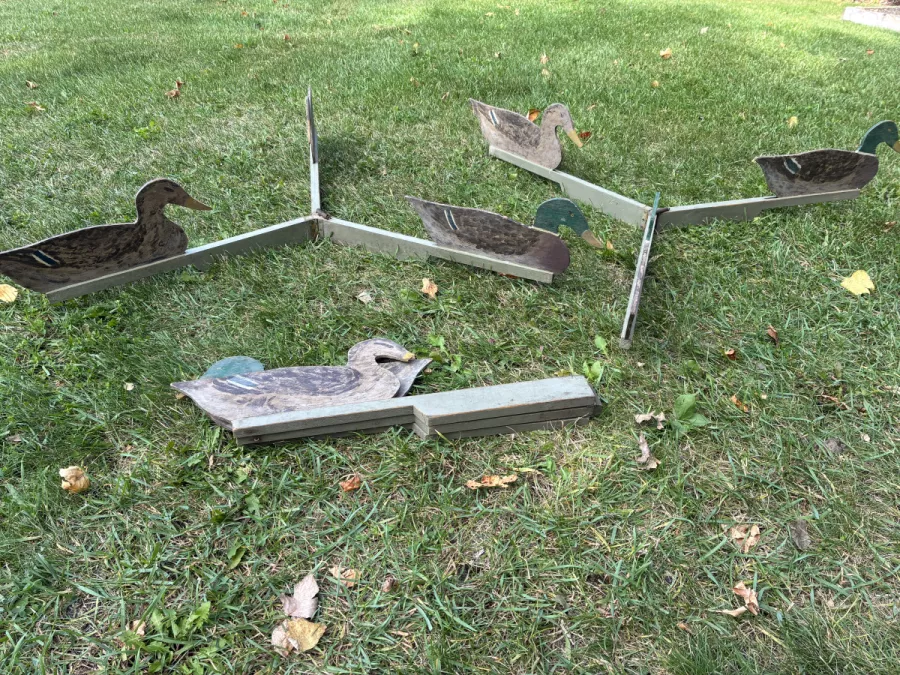 Vintage decoys; hand made, hand painted. Hours of labour invested in painting & assembly. Made in late 40’s, by family member. 3 birds in a set. ONLY 2 SETS left of three. $15.00 per set. Suitable for man cave, display, or could be separated for crafts, whirly-gig what have you.
