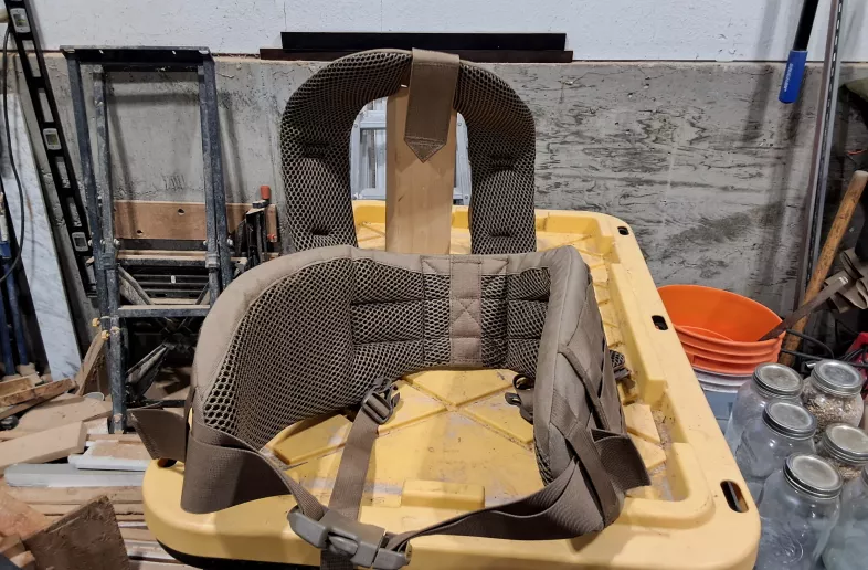 These are the upgraded heavier padded shoulder harness and waist belt. This shoulder yoke and waist belt are like new having been used for a short 5 day hunt only. Price is for an in person deal, shipping extra if required. payment by EMT or cash in person.