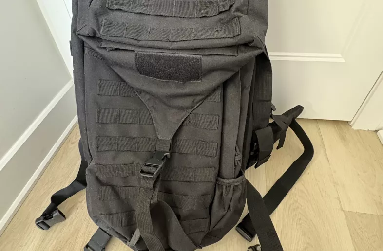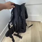 Brand Unknown, very little use. No dammage or tear. Top canopy stored inside the bag