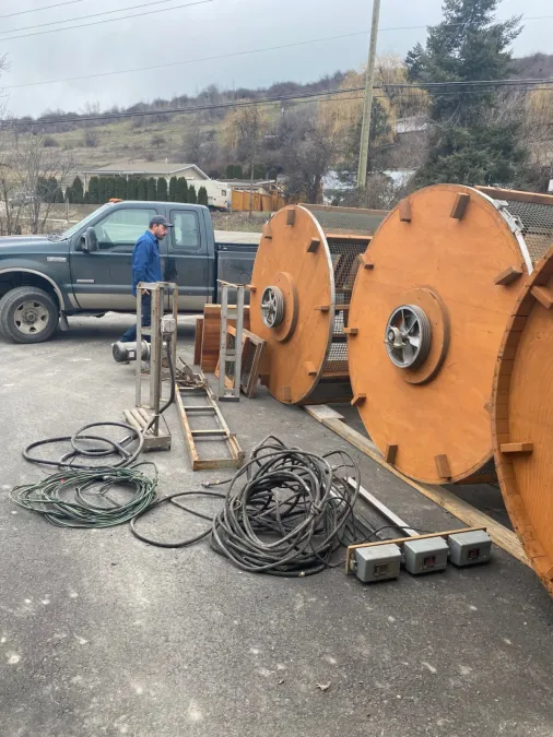 One wet drum (Approximately 5 foot wide 6 foot diameter), Two dry drums (Approximately 5 foot wide 6 foot diameter) and One shaker/cage drum (approx. 4 foot two inches wide six feet in diameter)