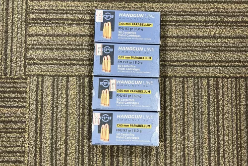 50.00 PPU 7.65mm Parabellum FMJ 93gr Nov 15, 2025 - 11:32 AM Fulcrum Outdoors PPU 7.65mm Parabellum FMJ 93gr-Forsale 20 Cartridges