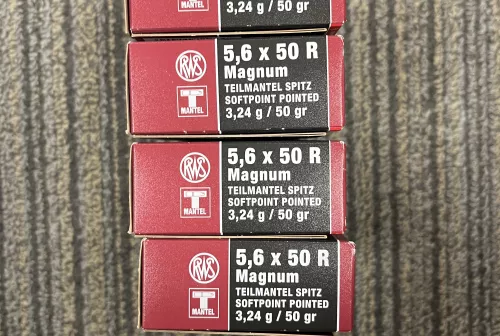 70.00 RWS 5.6x50 R Magnum 50gr SP Nov 15, 2025 - 11:35 AM Fulcrum Outdoors RWS 5.6x50 R Magnum 50gr-Forsale 20 cartridges 4 Boxes Available