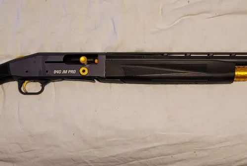 1200.00 Mossberg 940 JM Pro 12Ga Dec 3, 2025 - 7:00 PM Horseabout Mossberg 940 JM Pro 12Ga 24″ Semi-Auto Tungsten Gray Receiver Gold Accents