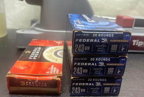150.00 Federal Power Shok 243 WIN 100 Grain Nov 8, 2025 - 2:17 PM Harfoush Federal Power Shok 243 WIN 100 Grain 3 Boxes / 57 Rounds