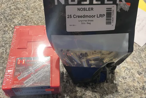 SOLD 250.00 25 creedmoor dies and brass Dec 3, 2025 - 5:47 PM Turbo250 Brand new hornady 25 creedmoor dies and 50 pieces of nosler brass. $250 shipped
