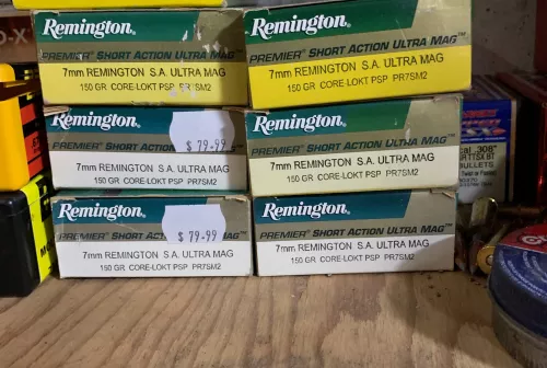 75.00 7mm SAUM Factory ammunition Nov 11, 2025 - 9:46 AM Mike Richards Hello, i have seven boxes of new Remington 7mm RSAUM Premier 150 gr Core Lokt ammunition for sale