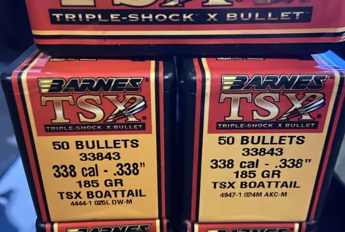 75.00 338 cal Barnes tsx 185gr bt bullets Nov 18, 2025 - 10:14 PM hunter22 I have for sale 4 unopened boxes of Barnes triple shock bullets 338 cal 185 gr and an open box wi
