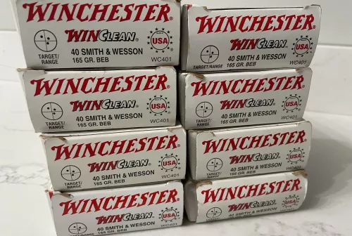 125.00 *** Pending Sale *** 450 rounds of Winchester .40 S&W Brass Jacketed 165 Grain Ball Oct 16, 2025 - 5:50 PM CaptainLee Up for grabs from my personal ammo stash are 9 boxes (450 rounds) of factory Winchester .40 S&