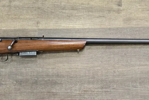 Browning trombone pump action 22LR with side mount and Weaver B4 scope.a few fair line cracks at