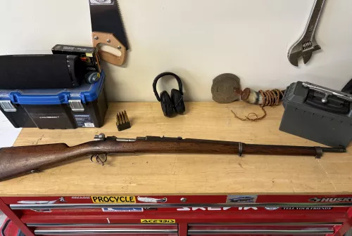 700.00 Chilean Mauser Nov 16, 2025 - 3:23 PM Alexrw1998 Chilean mauser 1895 converted to 7.62x51. Rifle is in ok condition. Shipping available at cost.