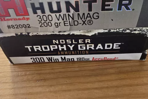 80.00 300 Winchester Magnum Nov 2, 2025 - 9:40 AM Ians2k 1 box Precision Hunter 200gr $80 1 box Nosler Trophy Grade 180gr $100