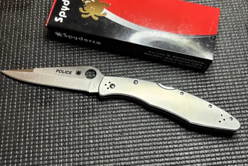 200.00 Spyderco Police Dec 1, 2025 - 11:30 AM ottawa guy Excellent 'as new' condition. Stainless handle, 4" VG-10 blade. Large handle for firm grip.