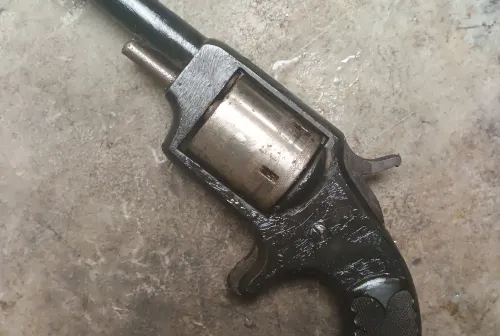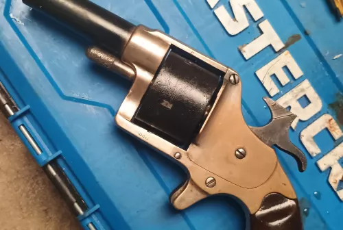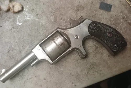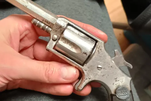 525.00 HR Mod 1 1/2 *32 Rimfire **Indexing video. Dec 4, 2025 - 9:44 PM Eyeontheprize $525 Shipped. Antique Status. No pal. 5 shot. Nickel mostly nice 85-95%. Indexs well.