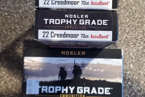 100.00 Nosler 22 Creedmoor 70gr Accubond Dec 2, 2025 - 2:37 PM whats up doc I have 3 full boxes, $100/box Local sale only No trades