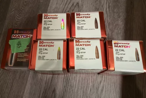 0.39 Hornady 75gr BTHP Nov 29, 2025 - 3:21 PM Bagsteak Downsizing and switching calibers. 2883 rounds available.