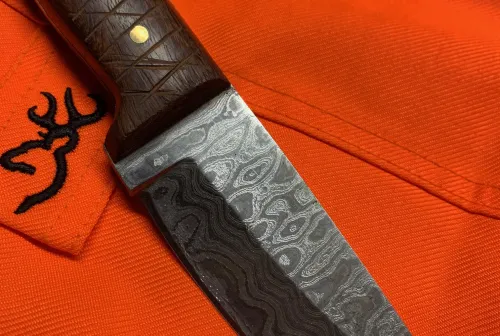 80.00 Damascus Steel Bushcraft Knife Dec 5, 2025 - 7:18 PM ColonelNate Damascus blade w drop leather sheath and fire iron that I made myself (deer antler)