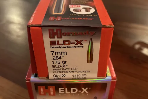 150.00 7mm 175 grain ELD-X Dec 4, 2025 - 8:49 PM NitwiT 170 175 grain ELDX in 7 mm One box of 100 unopened One box of 70