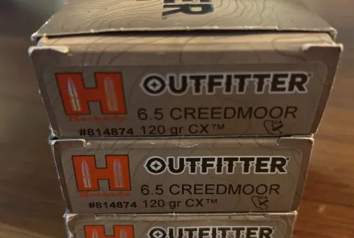 140.00 6.5 Creedmoor 120 grain Hornady Outfitter Dec 4, 2025 - 8:57 PM NitwiT 38 rounds of 120 grain 6.5 creedmoor ammo, produced by Hornady Outfitter series