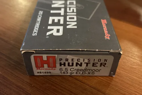 40.00 6.5 CM 143 gr ELDX Dec 4, 2025 - 9:01 PM NitwiT 16 rounds remaining 143 grain ELD-X Precision Hunter 6.5 Creedmoor