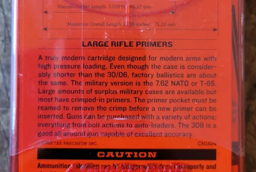 60.00 Lee Loader 308 win reloading kit Nov 28, 2025 - 12:58 PM JeffreyRaptor83 Brand new still factory sealed from Lee Precision Inc. Made in USA. Built to last