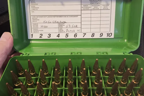 Swap / Trade 6.5 PRC Handloads Dec 1, 2025 - 3:17 PM Boomermjj 47 loaded with 53.5 grains of H1000. Has the 150 grain Chinchaga hollow tip bullets.