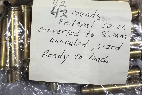 SOLD 15.00 8mm Mauser (reformed) from Federal 30-06 brass- 42 pieces Nov 27, 2025 - 3:52 PM bulletcaster75 Item is from an estate sale. Brass looks good and clean. Shipping paid by buyer -