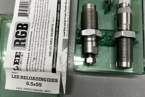SOLD 25.00 LEE 6.5X55 2 DIE SET- with #2 shell holder Dec 4, 2025 - 8:16 AM bulletcaster75 Item is from an estate sale. Item in very good condition.