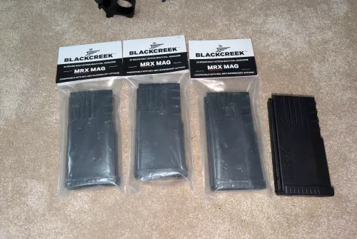 120.00 4X Blackcreek MRX Magazines Nov 27, 2025 - 2:38 PM Chaoz2001 I have 3X unopened MRX magazines and 1 that was used lightly used.Selling as a set.