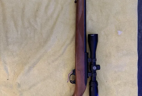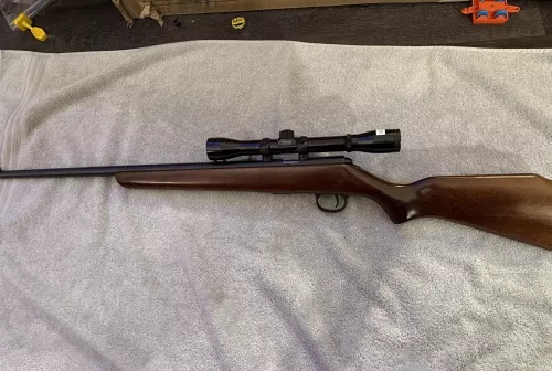 Harrington and Richardsons 865 plainsman. Scoped with bushnell banner 4x scope.
