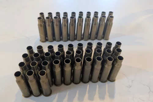 30.00 7.62x54R Brass Oct 26, 2025 - 2:47 PM garyg 53 pieces, deprimed and wet-tumbled 20 pieces are NEW! unfired Norma brand