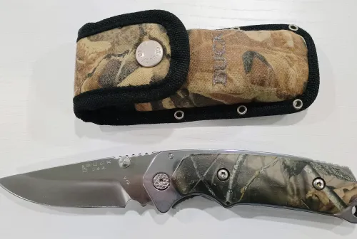 420HC steel Drop point blade with dual thumbstuds and jimping.