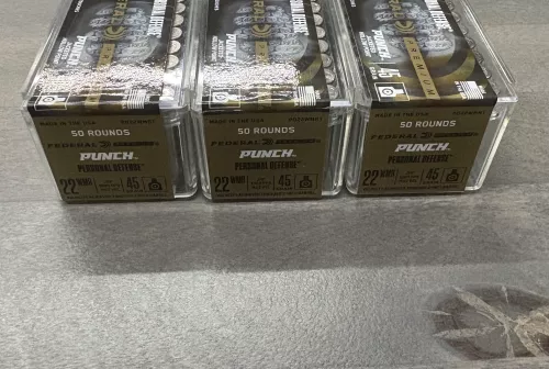 25.00 Federal Premium Personal Defense Punch Rimfire, 22 WMR, 45 Grain, Punch Jacket Hollow Point Nov 28, 2025 - 5:10 PM timpankewich Federal Premium Personal Defense Punch Rimfire, 22 WMR, 45 Grain, Punch Jacket Hollow Poi