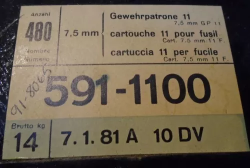 800.00 7.5x55 GP 11 Full case Oct 30, 2025 - 1:27 PM Edmonton.22 Hello I have for sale a full case of GP11 ammo. 480 rounds of 7.5x55
