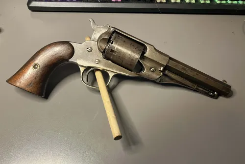 1700.00 .38 rf Remington new model police Dec 1, 2025 - 5:53 PM backpacker336 For sale is a scarcer Remington new model police in a .38 RF conversion cylinder.