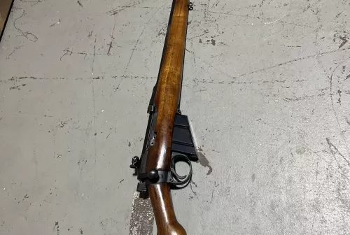 300.00 1918 No 1 Mk 3 Lee Enfield Sporter Nov 6, 2025 - 12:49 PM Drake00 1918 Lee Enfield sporterized stock, Lyman rear aperture sight and aftermarket reproduction magazi