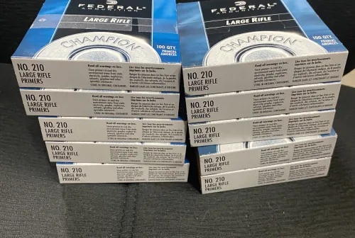 225.00 Federal 210 Dec 5, 2025 - 5:28 PM ebrooker 1000 federal 210 large rifle primers, two batches of 500. Not interested in shipping.