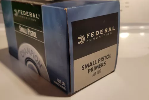 85.00 Federal small pistol primers Oct 21, 2025 - 8:47 PM KCKH023 1 brick (1000pcs) of federal small pistol primers $85